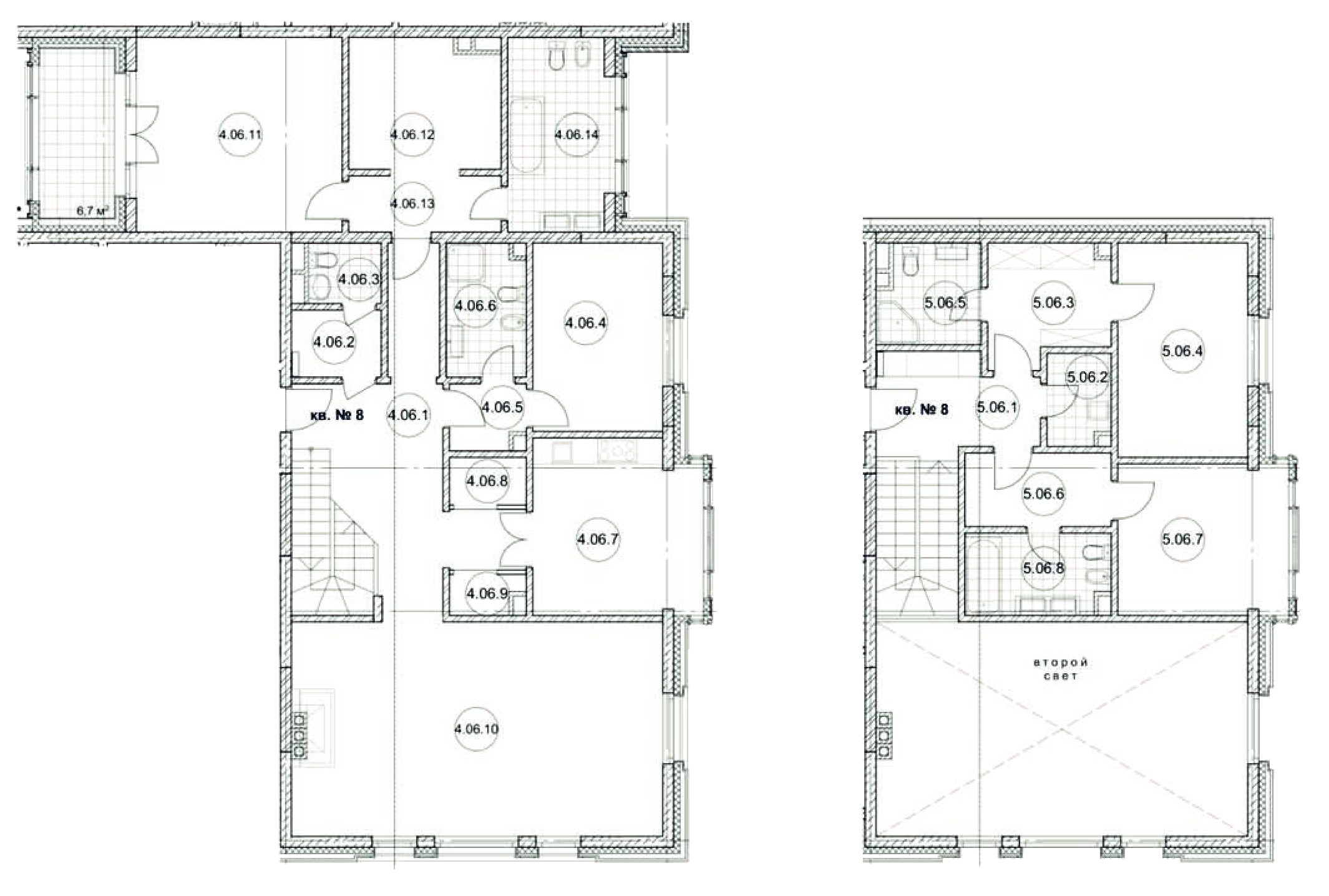 В двухуровневых квартирах окна второго света вписаны от пола до потолка, наполняя квартиру солнечным светом. Открывается великолепный панорамный вид на зелёные скверы с исторической застройкой.