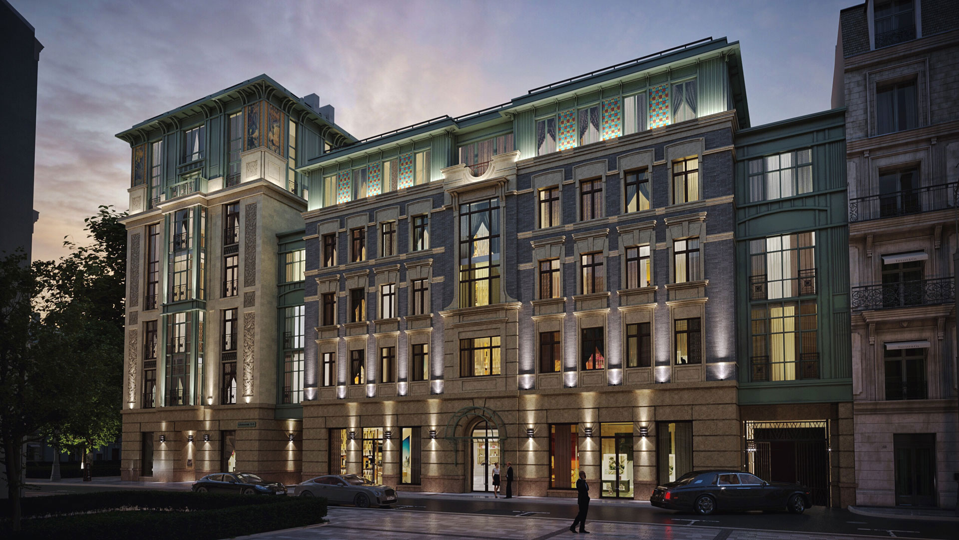 Подземный паркинг позволит беспрепятственно двигаться удлиненным автомобилям. Оснащен быстрыми зарядками для электромобилей.
