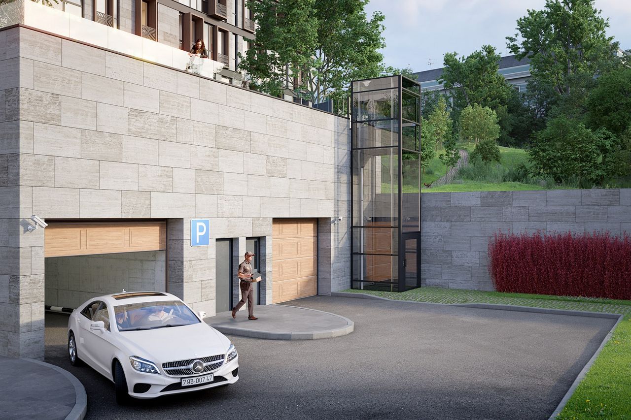 NV/9 ARTKVARTAL оборудован двухэтажным подъемным паркингом на 130 м/м. и бесшумными лифтами с уникальным дизайном.
