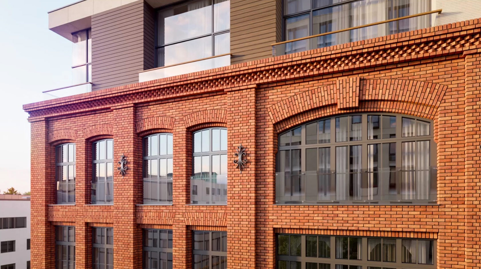 и современного. Фасад исторического корпуса Heritage воссоздан с помощью кирпича ручной формовки, а современный корпус Nouveau облицован натуральным юрским мрамором.