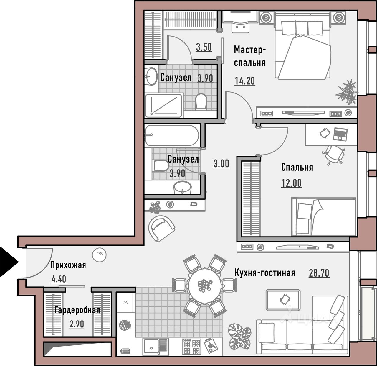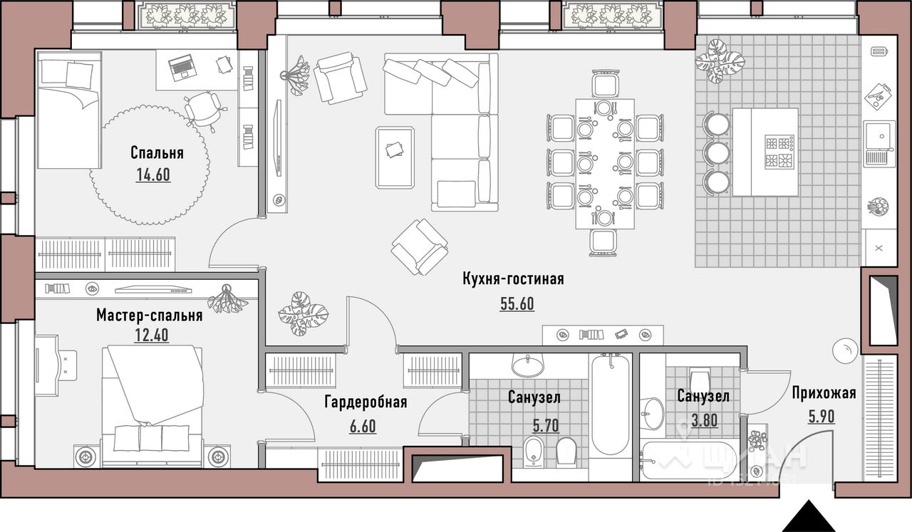 до 209.5 кв. м и пентхаусы от 59 до 245 кв. м.