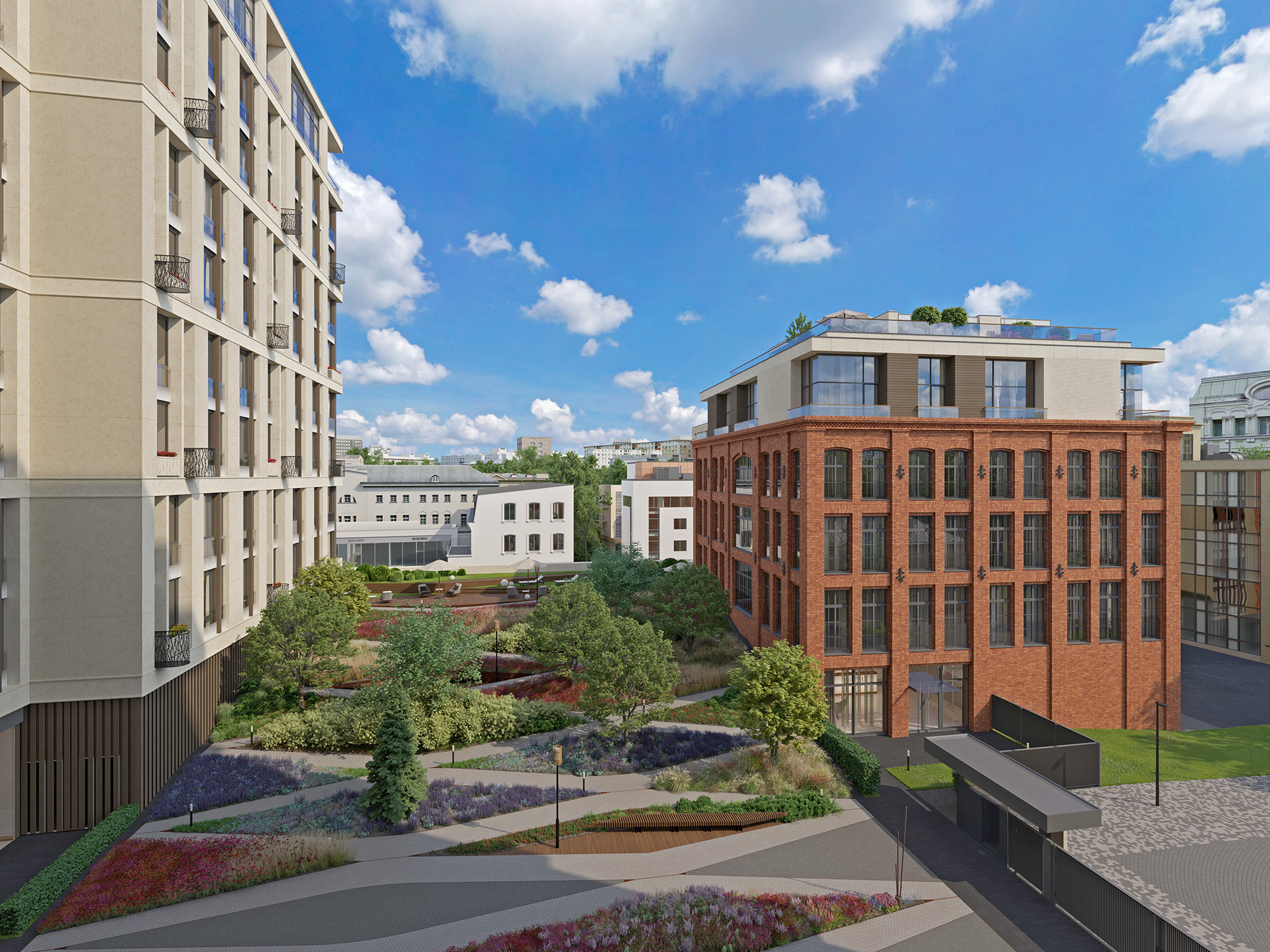 и современного. Фасад исторического корпуса Heritage воссоздан с помощью кирпича ручной формовки, а современный корпус Nouveau облицован натуральным юрским мрамором.